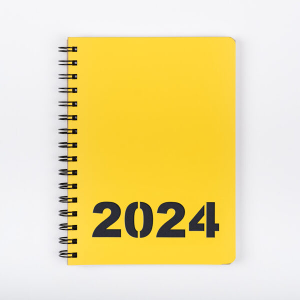Käsin sidottu kalenteri. Luotettava ja kestävä kumppani arjen ajanhallintaan. Perinteinen malli isolla vuosilukustanssauksella.